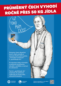 Zodpovědný přístup k jídlu je ale potřebný i doma. Na dalších plakátech v prostorách kolejí proto František Palacký vysvětluje klíčové pojmy „minimální trvanlivost“ a „spotřebujte do“ a upozorňuje na facebookovou skupinu Free Food UPOL – sdílení jídla, na níž je možné přebytečné jídlo nabídnout dalším zájemcům. Skupinu založil už v roce 2016 studentský spolek Udržitelný Palacký, který za celou kampaní stojí.