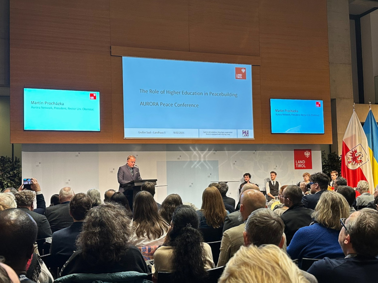 Konference The Role of Higher Education in Peacebuilding přivádí od 17. do 21. února do Innsbrucku přes 300 vědců z celého světa. Stojí za ní pracovní skupina Aurory Creation of Karazin University Peace Education Hub, kterou vede Univerzita Palackého a jejímž cílem je v době války podpořit Charkovskou národní univerzitu V. N. Karazina, která je přidruženým partnerem Aurory. Program konference se však věnuje úsilí o zachování míru v celosvětovém kontextu.