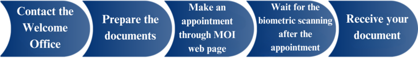 - Submit your documents - you can do this either personally after making an appointment online or by phone, or send the documents by post. If you send the documents by post, we recommend calling MOI no later than week after you send the documents to make sure your letter has arrived.