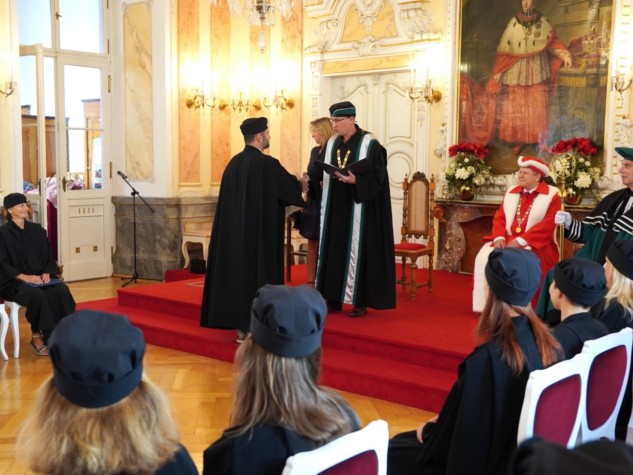Zatímco setkání v Neředíně se neslo v neformálním a uvolněném duchu, stříbrná promoce, která večernímu veselí předcházela, měla vše, co k akademickému slavnostnímu aktu patří. V Arcibiskupském paláci převzalo pamětní diplomy čtyřiadvacet absolventek a absolventů FTK z let 1998–2000.