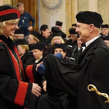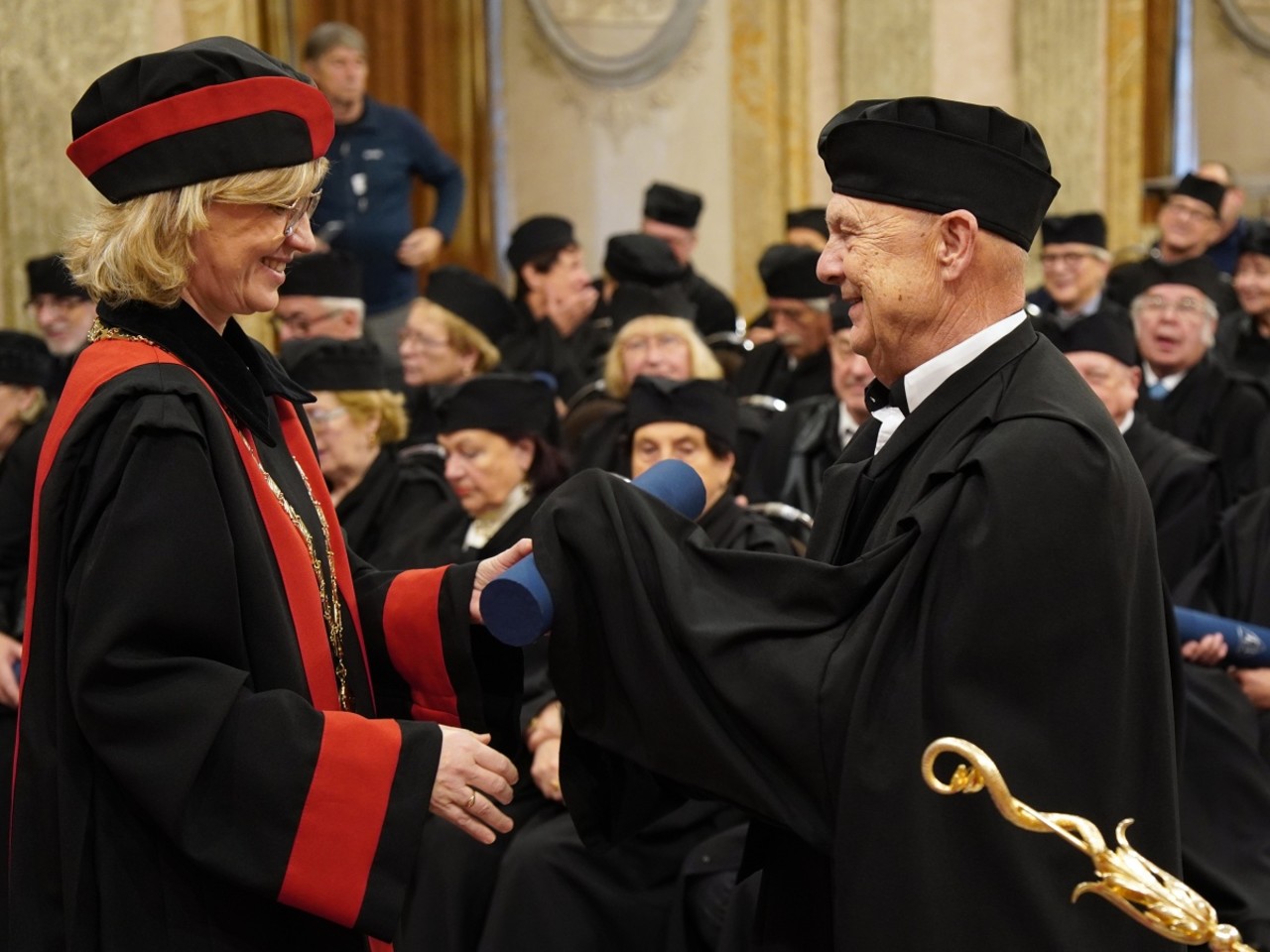 „Velmi si vážím toho, že jsem měl tu čest vás po padesáti letech promovat, a hluboce se skláním před vaší prací a vším, co jste učinili v průběhu vašeho života. Jsem hrdý na to, že jste absolventkami a absolventy naší lékařské fakulty,“ dodal děkan při přípitku.