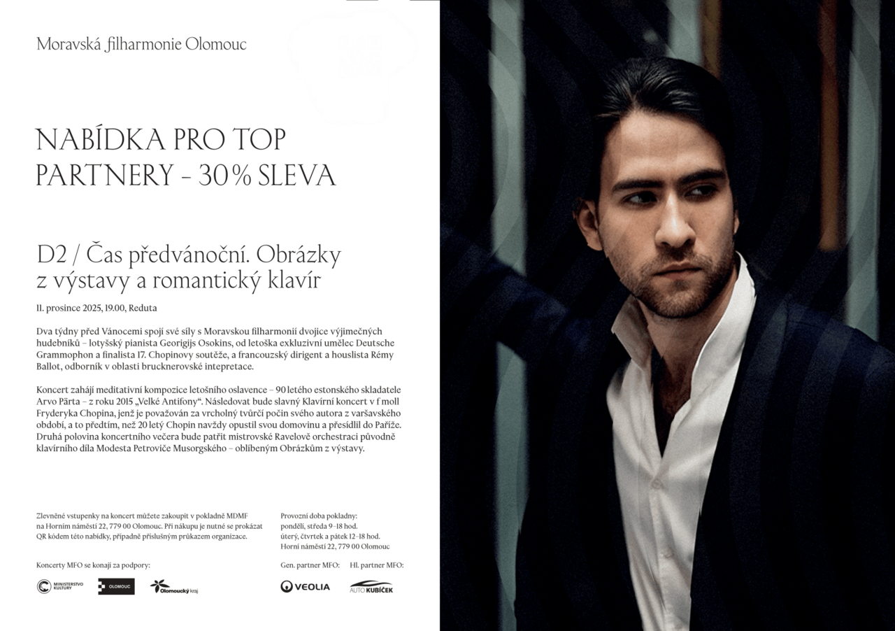 Absolventi Univerzity Palackého mohou i v prosinci čerpat zvýhodněné vstupné na vybraná představení Moravského divadla Olomouc i koncerty Moravské filharmonie Olomouc.