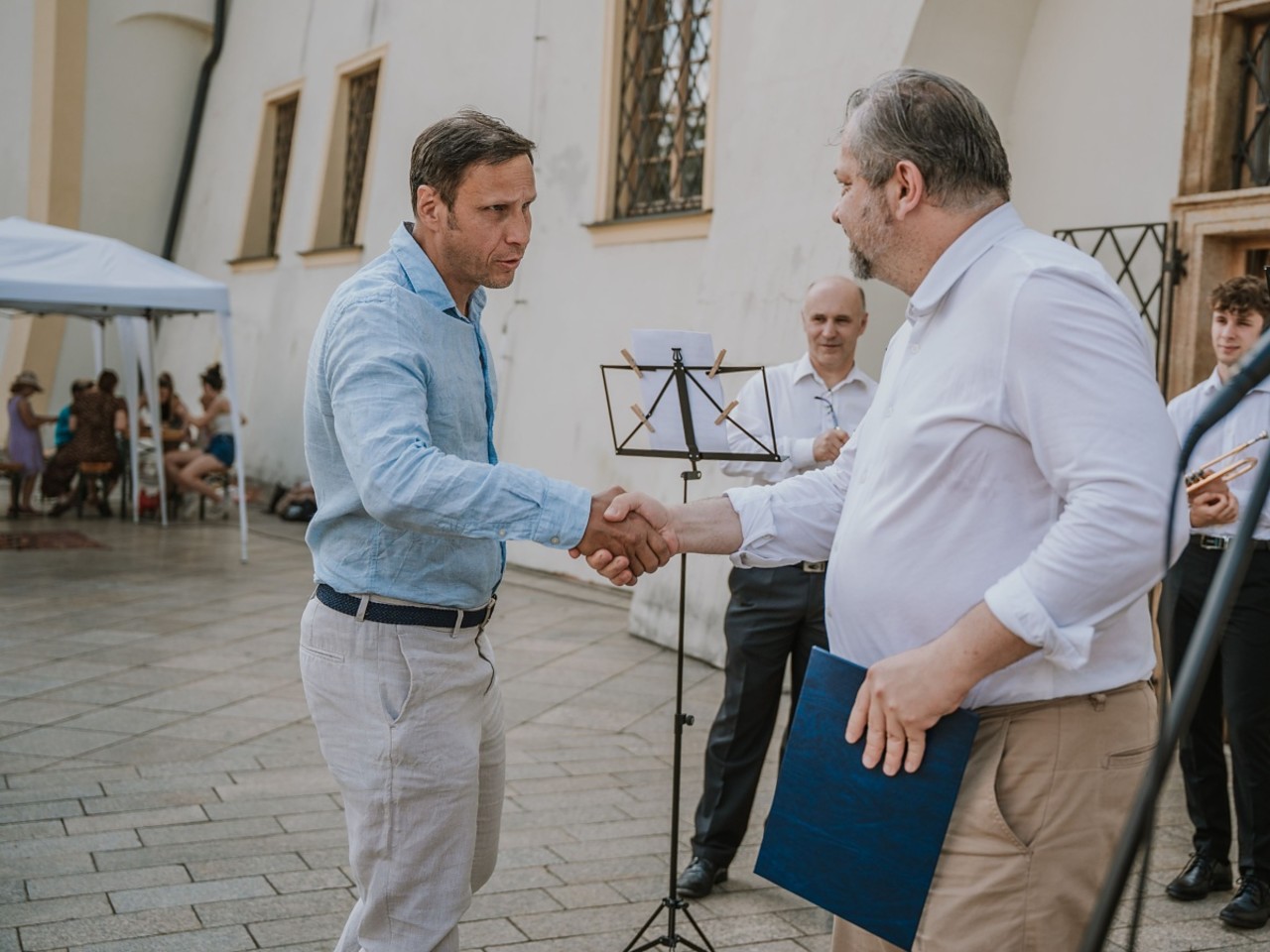 Tradičního Setkání v zahradách, během kterého děkan FF UP vyzdvihl práci akademiků, se zúčastnili zaměstnanci fakulty, studující v doktorských studijních programech i studentští senátoři a senátorky. Zahradní slavnost v prostředí Parkánových zahrad nabídla také koncert hudební skupiny Cimbal Hell Band. Večer pak hudebně zpestřilo i studentské těleso KAAmarádi z anglistiky.