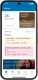 UPlikace is an official mobile application for students, lecturers and non-academic staff of Palacký University Olomouc. In the app you can find a detailed overview of studies including a convenient timetable, exam dates or an interactive map of the university buildings. You can register or unregister exam dates and have full control over your studies at your fingertips. What's more, you are immediately notified when a grade is entered in IS/STAG or when a full exam date is released. The UPlikace also allows sending a crisis alerts to students and staff at UP in case of an emergency situations.