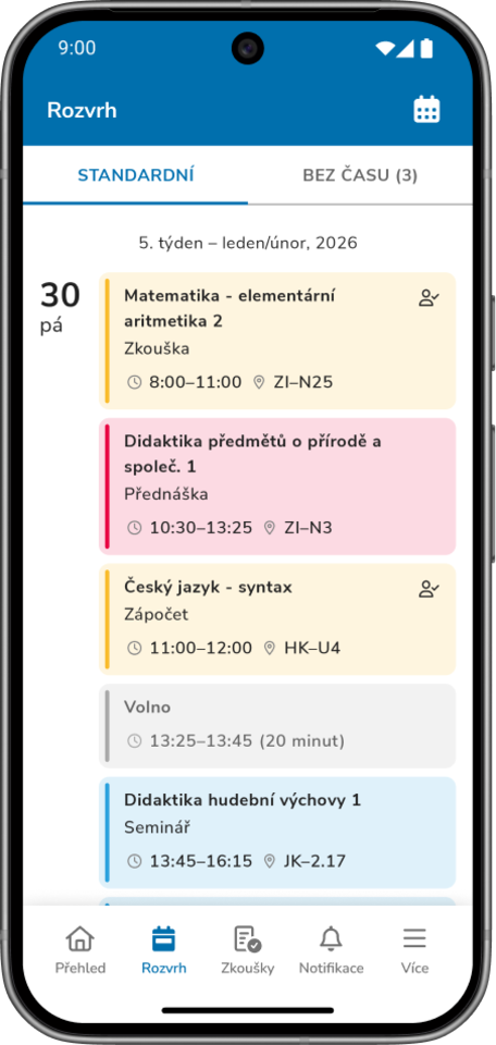 - alerts for the start of exam registration and the approaching end of registration/unregistration