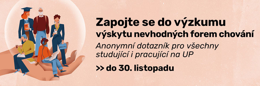 | | Zapojte se do studie o výskytu nevhodných forem chování v českém akademickém prostředí Šetření zaměřené na genderově podmíněné násilí, které je rozsahem první svého druhu v českém akademickém prostředí, spustilo Národní kontaktní centrum – gender a věda Sociologického ústavu Akademie věd ČR (AV ČR). Výzkum probíhá na veřejných vysokých školách a ústavech AV ČR a je určen studujícím i zaměstnaným osobám včetně neakademického personálu, a to jak domácím, tak zahraničním. Vyplňovat jej můžete, ať už s genderově podmíněným násilím zkušenost máte, či nikoliv. Otevřen je do 30. listopadu, více informací a odkazy najdete v článku. | | | | | Fischerovskou přednášku pronese Šimon Pánek – už 2. listopadu Spoluzakladatel a výkonný ředitel humanitární organizace Člověk v tísni Šimon Pánek pronese výroční přednášku, kterou UP organizuje jednou ročně k poctě prvního rektora obnovené olomoucké univerzity Josefa Ludvíka Fischera. Stane se tak v aule Právnické fakulty UP ve čtvrtek 2. listopadu v 18 hodin. Vstup na přednášku je zdarma, doporučujeme rezervaci místa. Pro ty, kteří se do auly právnické fakulty nedostanou, bude připraven online přenos. | | | Jak vznikají hodnoticí zprávy Mezivládního panelu pro změnu klimatu? Přijďte na přednášku Radima Tolasze, českého klimatologa a meteorologa a zároveň zástupce v Mezivládním panel pro změnu klimatu (IPCC). Ten pravidelně vydává hodnoticí zprávy o klimatu – ta nejnovější má 7489 stran a na jejím vzniku se podílelo celkem 842 autorů. Jak tyto zprávy vznikají, kde se získávají data, jak se prověřují a kdo je schvaluje? Zjistíte v úterý 7. listopadu v čase 14:00–16:00 v budově FF UP – tř. Svobody 26, místnost 4.41. Registrujte se zde, více na webu Udržitelné univerzity. | | Naučte se, jak být na silnicích zodpovědnějšími řidiči Je vám mezi 18 a 24 lety a vlastníte řidičák alespoň 5, ale maximálně 18 měsíců? Přijďte si poslechnout, co vám v autoškole říct nestihli! Workshopy, které připravila katedra psychologie FF UP, se budou věnovat tématům, jako je rozptýlení a multitasking při řízení, stres, únava, plánování cesty, nebezpečné chování a mnoho dalšího. Probíhají už od 2. 11. a dále v listopadu a prosinci – přihlaste se co nejdříve ve formuláři, kde najdete i další info. | | | | Tvůrčí pobyt pro začínající umělce ve Švýcarsku se stipendiem Fotíte, věnujete se výtvarnému umění nebo se pohybujete v kreativním průmyslu? Hledáte nové nápady či inspiraci nebo se prostě chcete posunout? Město Olomouc připravilo spolu s partnerským městem Luzern ve Švýcarsku tvůrčí pobyt pro začínající umělce, kteří se věnují právě fotografii, výtvarnému umění nebo kreativním odvětvím. Můžete tak strávit tři měsíce ve Švýcarsku, kde budete mít hrazené ubytování a dostanete příspěvek na životní náklady. Podrobnosti najdete na webu. | | | | Jaké jsou vaše hodnoty v době internetu?