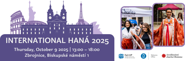 Visit Erasmus Days and study abroadWondering where and how to go for studies or practical internships abroad? Which country to choose, what arrangements are needed, and what scholarships are available? Find out during Erasmus Days at UP from 13 to 16 October. You will also have the chance to ask graduates of foreign programmes directly, and prospective applicants for scholarships for study stays in the USA are welcome. More on the International Relations website. (in Czech) |
