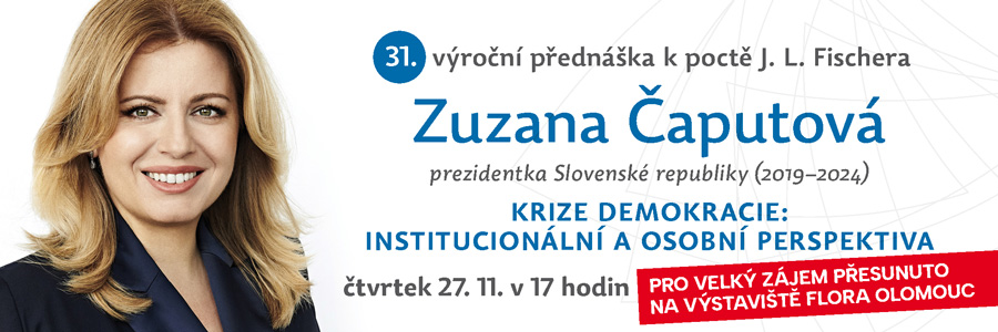 Pro velký zájem navyšujeme kapacitu přednášky Zuzany Čaputové V důsledku velkého zájmu o letošní Fischerovskou přednášku, kterou prosloví Zuzana Čaputová, se UP rozhodla přesunout přednášku z auly PF UP na Výstaviště Flora Olomouc a díky tomu navýšit kapacitu akce o dalších 200 míst. Registrační formulář bude znovu spuštěn ve čtvrtek 20. listopadu ve 12:00 a přístupný bude do vyčerpání navýšené kapacity. Všechny dosavadní registrace zůstávají platné. Přednáška se uskuteční 27. listopadu od 17 hodin v Pavilonu A na Výstavišti Flora Olomouc. Bude rovněž streamována, ale pouze po přihlášení k univerzitnímu účtu. |