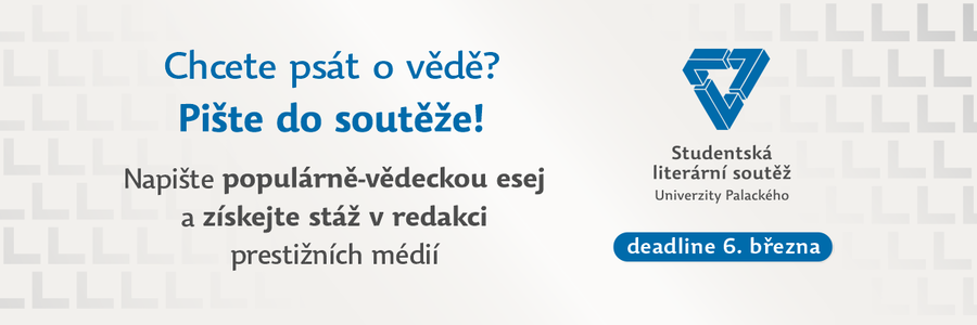 Umíte psát zajímavě o vědě? Pošlete nám populárně-naučnou esej!Tradiční Literární soutěž UP má letos novou kategorii. Napište laicky poutavý text o svém vědecko-výzkumném tématu a získejte finanční odměnu a stáž v prestižních redakcích! Nejlepší eseje se objeví v Deníku N, Týdeníku Respekt a časopisu WIRED. Tematické vymezení neexistuje. V soutěži uvítáme eseje od studentů a studentek z oblasti humanitních a sociálně-vědních oborů, stejně jako přírodovědná či lékařská témata. Tak pište a šiřte své výzkumné nadšení! Do 6. března. Více o soutěži na literarnisoutez.upol.cz. |