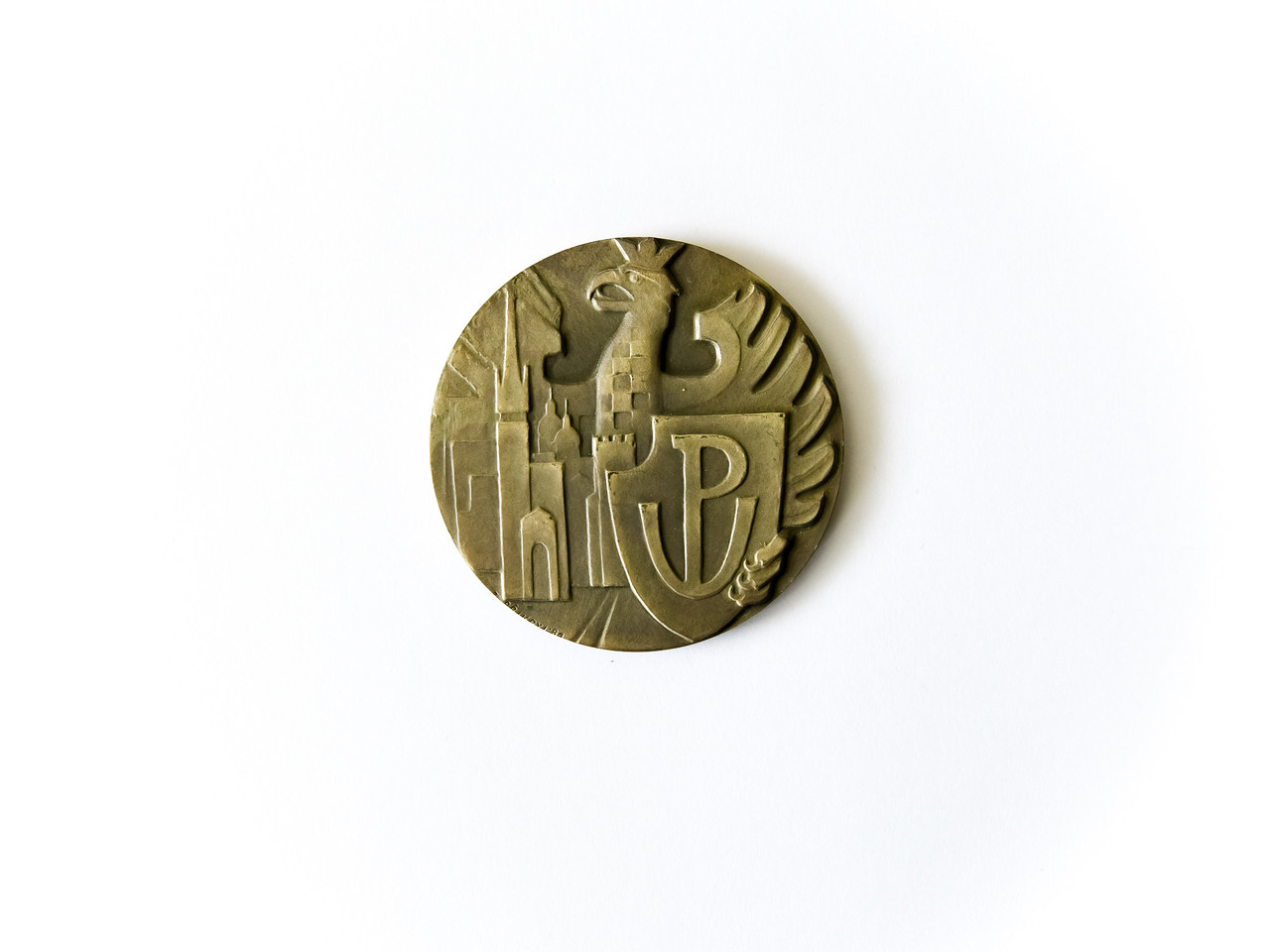 avers: v pozadí korunovaná šachovaná orlice, pod levým křídlem siluety olomouckých historických budov, v pravém pařátu drží znak univerzity, sign. Z. PŘIKRYL 81