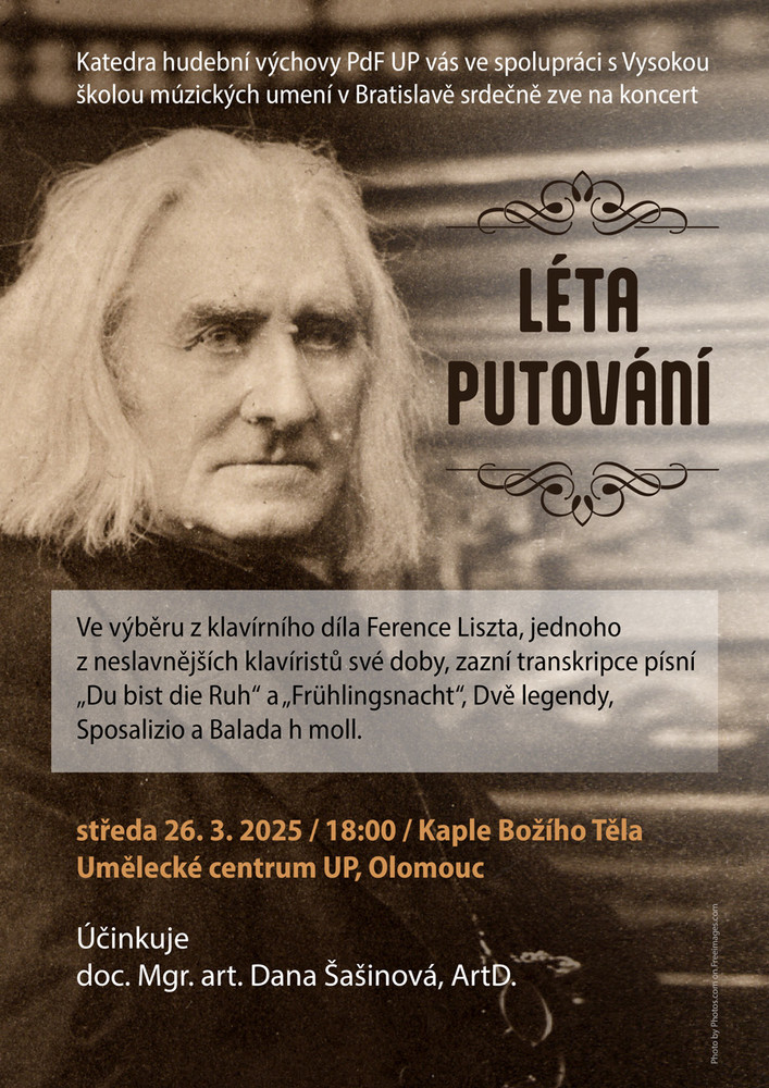 Doc. Mgr. art. Dana Šašinová, ArtD., renomovaná slovenská klavíristka a pedagožka na VŠMU v Bratislavě, přednese 26. března 2025 v Kapli Božího Těla UCUP klavírní recitál s názvem Léta putování, ve kterém představí výběr z klavírní tvorby Ference Liszta.