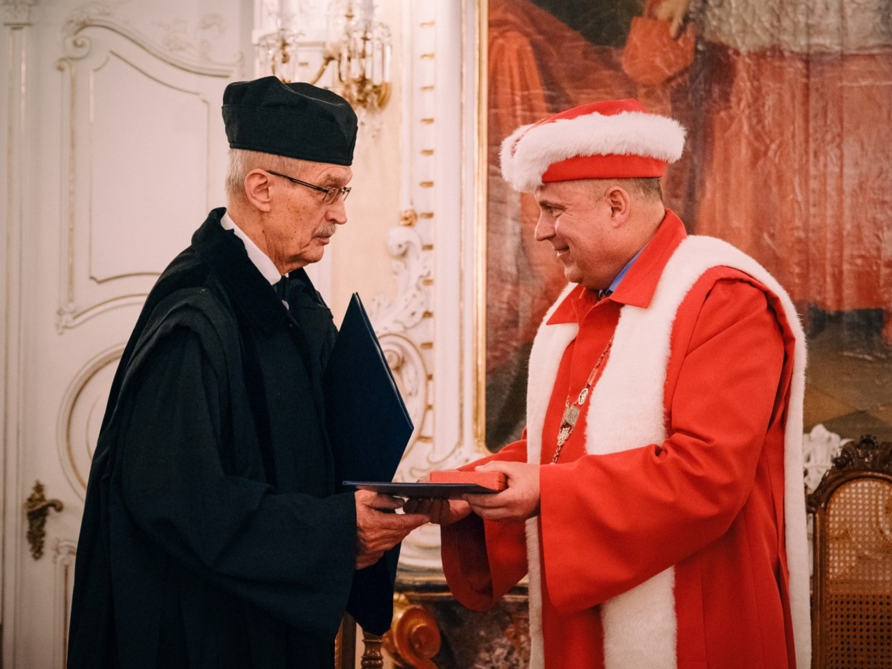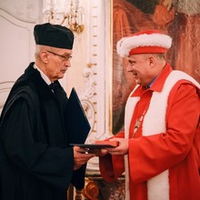 “Almost fifty years later, I received an invitation from the Faculty of Mathematics and Physics in Prague to attend a lecture by Christian Krattenthaler entitled ‘Mathematics and Music? Personal Views on a Difficult Relationship’. When Christian came to know the topic of my thesis and the time of its creation, he asked me what I had actually based it on in 1971. Then he sent me the very first study on the subject, which was only published in 1979.... The wonderful thing about this story is that Prof Jiroušek had a vision that came true. He believed that symmetric polynomials were not a dead branch of algebra. I regret that I was unable to fulfil his hope that I would continue in this field. In the context of the time, it was truly impossible for me. I am sorry that he is no longer with us and that he cannot take part in this great honour for me," said the new honorary doctor from Palacký University, who also received a commemorative medal at the conclusion of his speech.