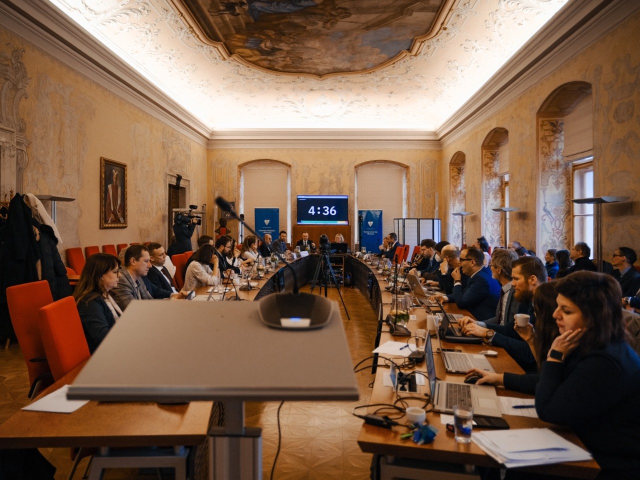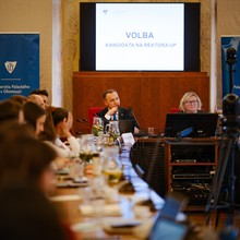 Six candidates competed for the position of UP Rector: recreationist Ivo Jirásek from the UP Faculty of Physical Culture, lawyer Michael Kohajda from the UP Faculty of Law, physicist Jakub Navařík from UP CATRIN, physicist Tomáš Opatrný from the UP Faculty of Science, gynaecologist, obstetrician, geneticist, and current rector Martin Procházka, and psychologist and priest Peter Tavel from the UP Sts Cyril and Methodius Faculty of Theology. In their five-minute speeches, they presented their ideas of where UP should be heading in the four years to come. Then during a 90-minute debate, they answered inquiries concerning their visions for their respective teams of vice-rectors, university funding, salary policy, security, and internal communication.