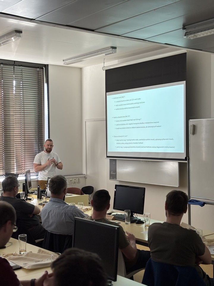Po obědové pauze se účastníci seznámili s výrobním procesem piva a jednotlivými fázemi vaření. Získali ucelený přehled o celém postupu a zároveň porozuměli klíčovým bodům, kde mohou vznikat chyby ovlivňující chuť, charakter piva nebo vést ke vzniku pivních vad. Vrcholem programu byl interaktivní senzorický trénink pod vedením Matúše Krátkého z Pivního ráje. Účastníci si prakticky vyzkoušeli senzorické hodnocení piv a identifikaci různých pivních vad na reálných vzorcích. Tento trénink přinesl cenné zkušenosti a pomohl účastníkům lépe pochopit, jak rozpoznat kvalitní pivo.
