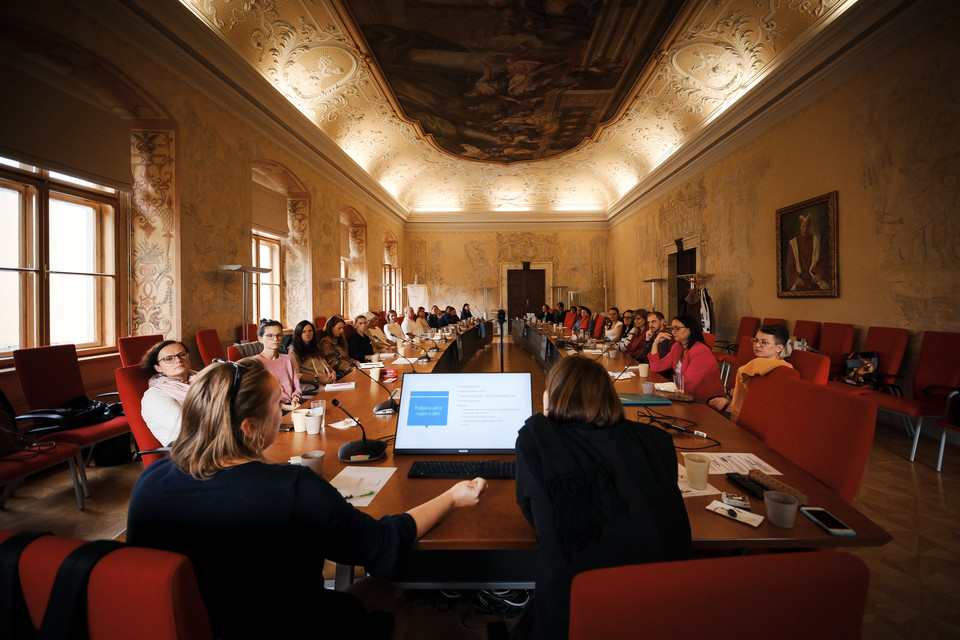 Téměř plná velká zasedací místnost rektorátu hostila workshop Balancování s work-life balance určený pro personalistky, vedoucí, akademičky i technickohospodářské pracovníky a pracovnice. Společně se zaměřili na podporu zavádění různých opatření na usnadnění slaďování pracovního a osobního života a na práci s různorodým týmem zaměstnaných. „Mimo hlavního tématu jsme diskutovali i o age-managementu či o dalších možnostech péče o zaměstnané,“ doplnila Veronika Fousková z oddělení řízení lidských zdrojů.