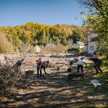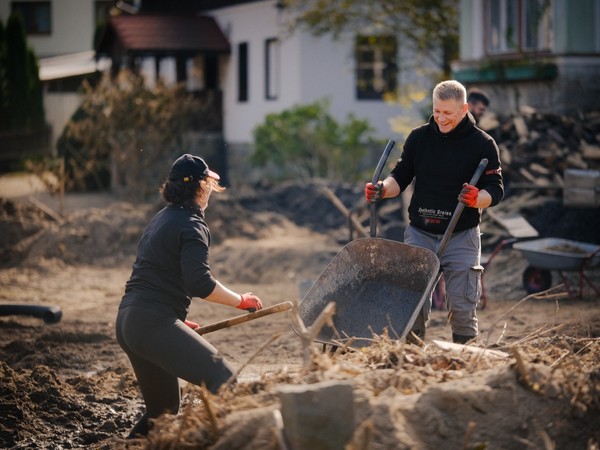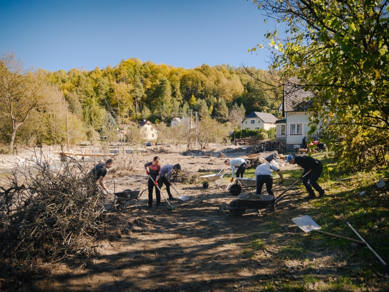 Ve Žlíbku, místní části Žulové-Tomíkovic, po jeho boku pracovala také předsedkyně akademického senátu fakulty zdravotnických věd Šárka Šaňáková. „Jsem příznivcem všech akcí pro zaměstnance univerzity, které mají přesah mezi jednotlivými součástmi. Když přišla výzva na Jesenicko, hned jsem se přihlásila. Mám k tomuto místu osobní vazby a měla jsem potřebu alespoň takto symbolicky pomoct regionu,“ vysvětlila svou motivaci a dodala, že byla mile překvapená, když na shromaždišti u autobusů potkala i kolegy z děkanátu její fakulty. „Dobrodružná byla už cesta na místo prací, kdy jsme šli asi třičtvrtě kilometru opuštěnou, pustou, ale nádhernou krajinou s výhledy na hřeben Rychlebských hor. Osada je nyní úplně odříznutá od civilizace, povodeň strhla most i silnici, železniční trať je také mimo provoz. Ale už je tu provizorní dřevěný most, přes který se dá přejet i s plnými kolečky,“ popsala.