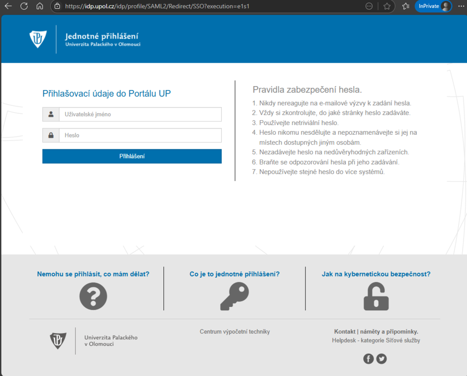 „Univerzita Palackého je pod konstantním kybernetickým útokem. Nejslabšími články jsou přitom sami uživatelé, kteří v dnešním uspěchaném světě snadno podlehnou sofistikovanému útoku a prozradí své heslo útočníkovi. Pouze s hesly proto v dnešním světě již nevystačíme a trendem je zavádění vícefaktorového ověřování. Aktuální přechod na nový způsob přihlašování je právě přípravou na vícefaktorovou autentizaci,“ vysvětluje ředitel Centra výpočetní techniky UP David Skoupil s tím, že nová podoba přihlašování se bude týkat všech služeb, které jsou momentálně napojené na jednotné přihlášení.