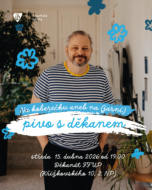 Přijďte 15. dubna v 19:00 na neformální setkání s děkanem FF UP Janem Stejskalem, se studentskou komorou AS FF UP a s proděkany. Využijte prostor k otevřené debatě o tom, co vám ve studiu dělá radost i starost, nebo si jen užijte večer v přátelské atmosféře.