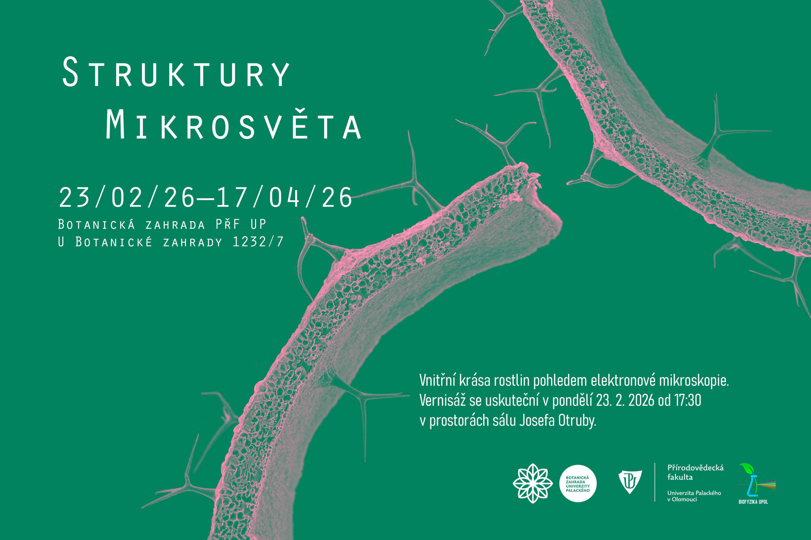 Výstava se koná ve spolupráci s Katedrou biofyziky PřF UP. Bude přístupná v pracovní dny do 16 hod. do 17. 4. 2026.