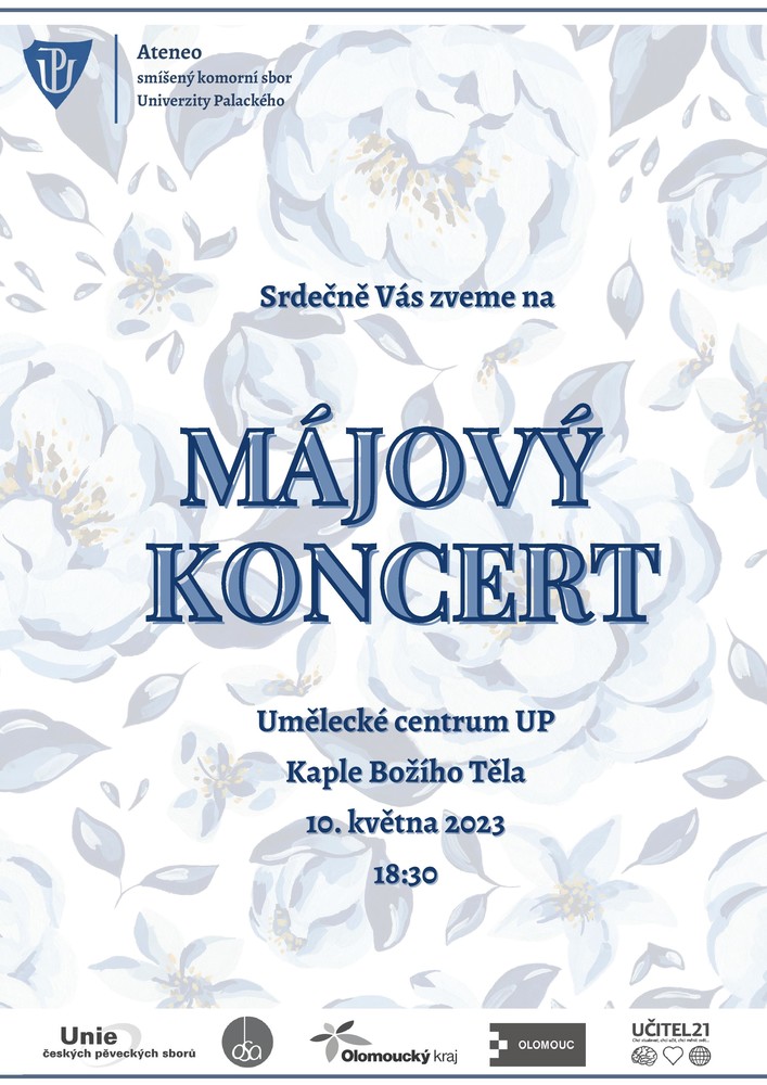 Smíšený komorní sbor Ateneo UP Olomouc zve srdečně všechny příznivce sborového zpívání na svůj tradiční Májový koncert. Program je sestaven ze skladeb autorů nejrůznějších žánrů od klasické hudby po muzikálové melodie.