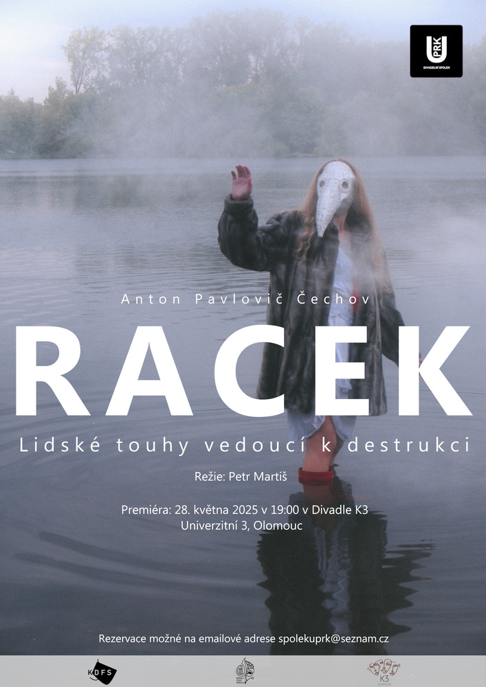 Projekt Racek: Lidské touhy vedoucí k destrukci, vycházející z významného dramatu Antona Pavloviče Čechova Racek, uvádí Divadelní spolek UPrk v režii Petra Martiše. V radikální úpravě, na níž se vyjma režiséra podílela i dramaturgyně Kristina Kalendová a výtvarnice Anna Bancířová, se inscenace zabývá především tématem nezkrotné touhy, kterou autor ve svém textu nazývá „rackem“. Do jaké míry je člověk ochoten krotit své vášně? Co se stane, ztratí-li nad nimi plnou kontrolu? A jak moc dokáží člověka změnit? Ať už jde o slávu, uznání, lásku či prosté pochopení, jedno mají tyto sny společné. Při neopatrném zacházení s nimi dokážou člověka dovést do záhuby.