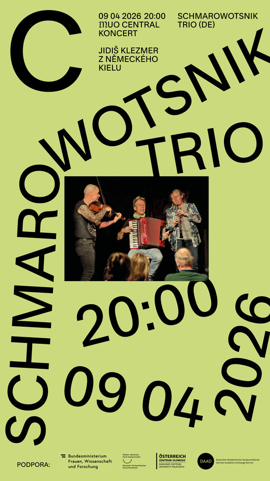 V sále MUO Central hraje od 20:00 německá skupina Schmarowotsnik Trio z Kielu jidiš písně v originálním provedení. Neváhejte, pokud se chcete dozvědět něco víc o klezmeru apod., hudebníci budou svou produkci i velmi zajímavě komentovat (nikoli v jidiš, ale v angličtině).