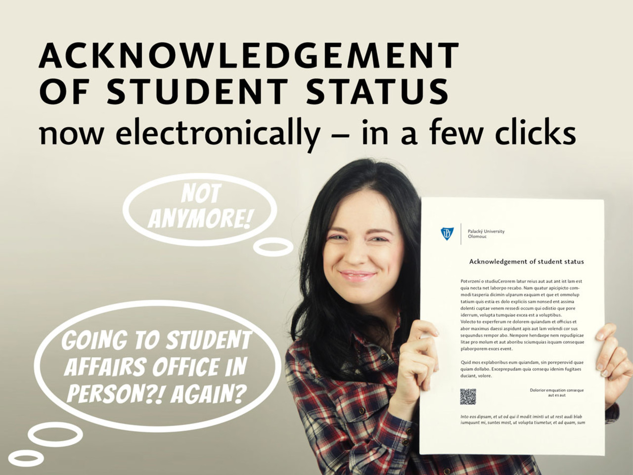“The new system makes it easier for students to access their study confirmation. Every UP student can generate it anywhere and at any time. The QR code is a guarantee that the information is continuously updated. In addition, it is much more environmentally friendly; it also reduces the administrative burden on everyone, especially the study offices at all faculties,” added Vice-Rector for Undergraduate Studies, Vít Zouhar.