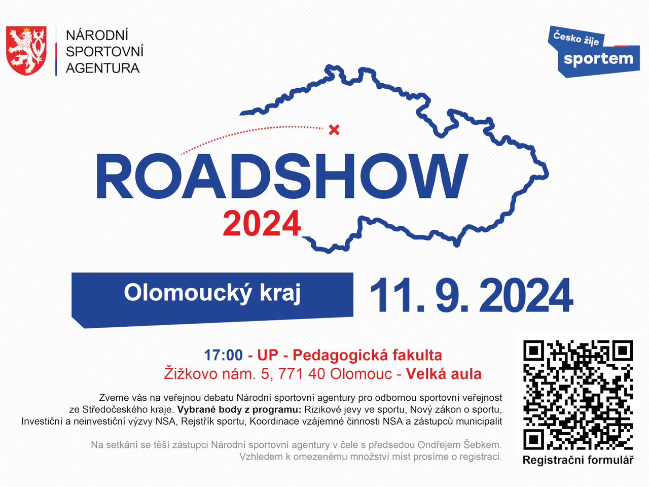 Jak předcházet rizikovým jevům ve sportu? Co přinese nový zákon o sportu a jak využít podpory Národní sportovní agentury? Pokud máte zájem diskutovat o stavu a rozvoji sportu v Česku i konkrétně v Olomouckém kraji, přijďte na Roadshow Národní sportovní agentury.