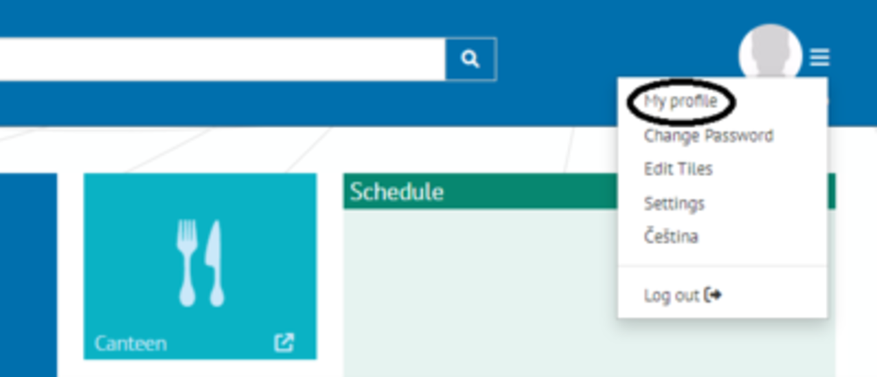 1. After logging into portal.upol.cz, go to "My profile" in the upper right corner. Click on "Identification card" on the left.