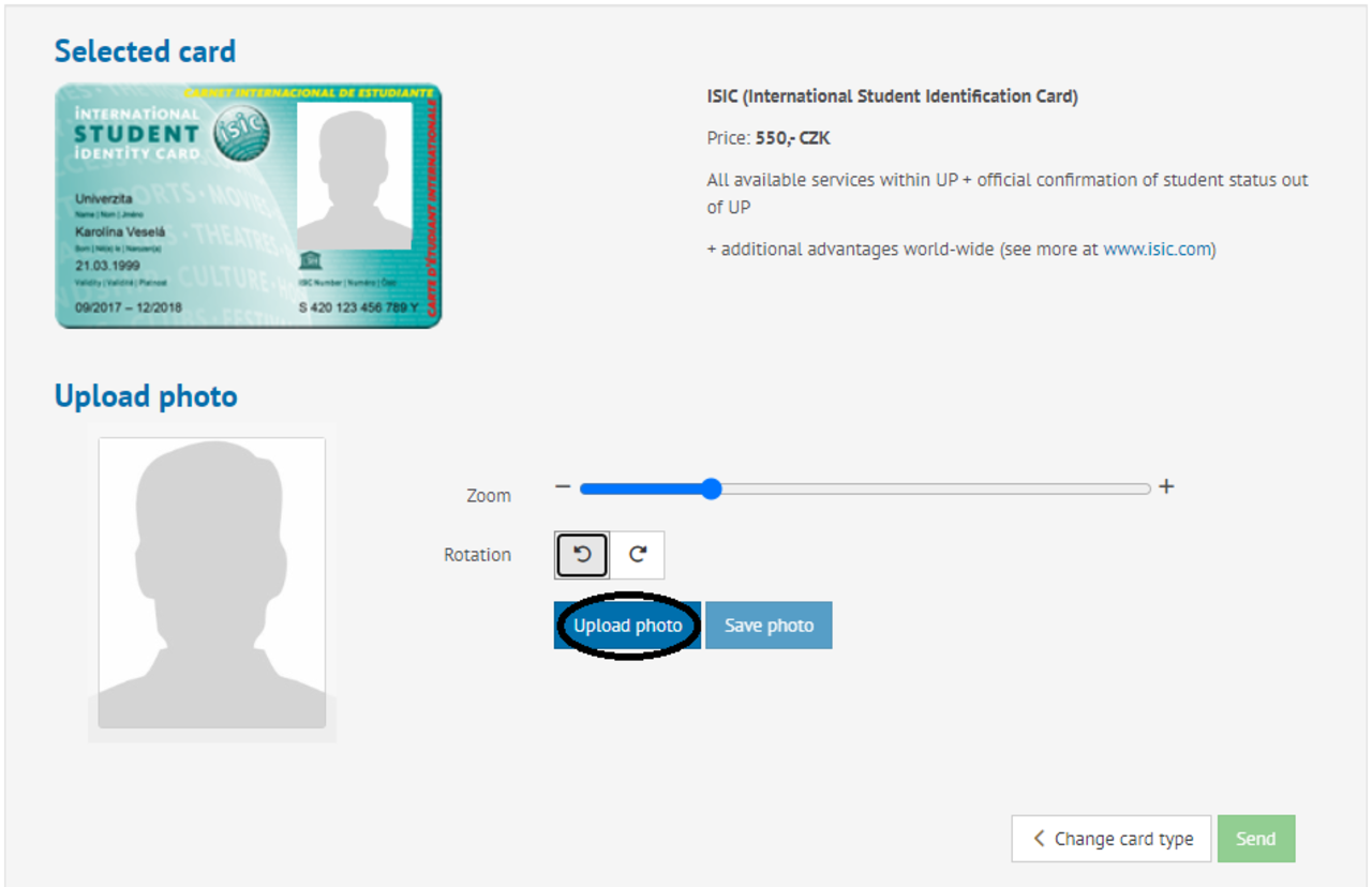 2. Choose the Identification card you want to apply for (ISIC or UP card). Both provide the same services within the university. In case you already hold an ISIC from your home institution/country, request Palacký University Standard Blue Card (UP card) and pay less for the card arrangements. In case you do not have an ISIC yet, it is recommended to apply for the ISIC and use additional advantages.